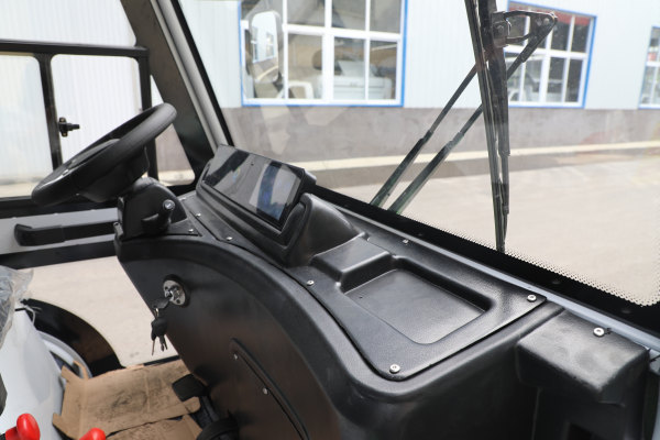 駕駛室材質(zhì)及燈具 鋼制結(jié)構(gòu),8字管一體折彎成型與鈑金拼組結(jié)構(gòu)合理,美觀大方,前一體化嵌入式LED大燈,塑料儀表工作臺,儀表總成包含高亮度電子數(shù)顯儀表、7寸液晶大屏MP5(帶藍(lán)牙、USB接口)、紅外線高清倒車影像,帶雨刮器,警示燈。